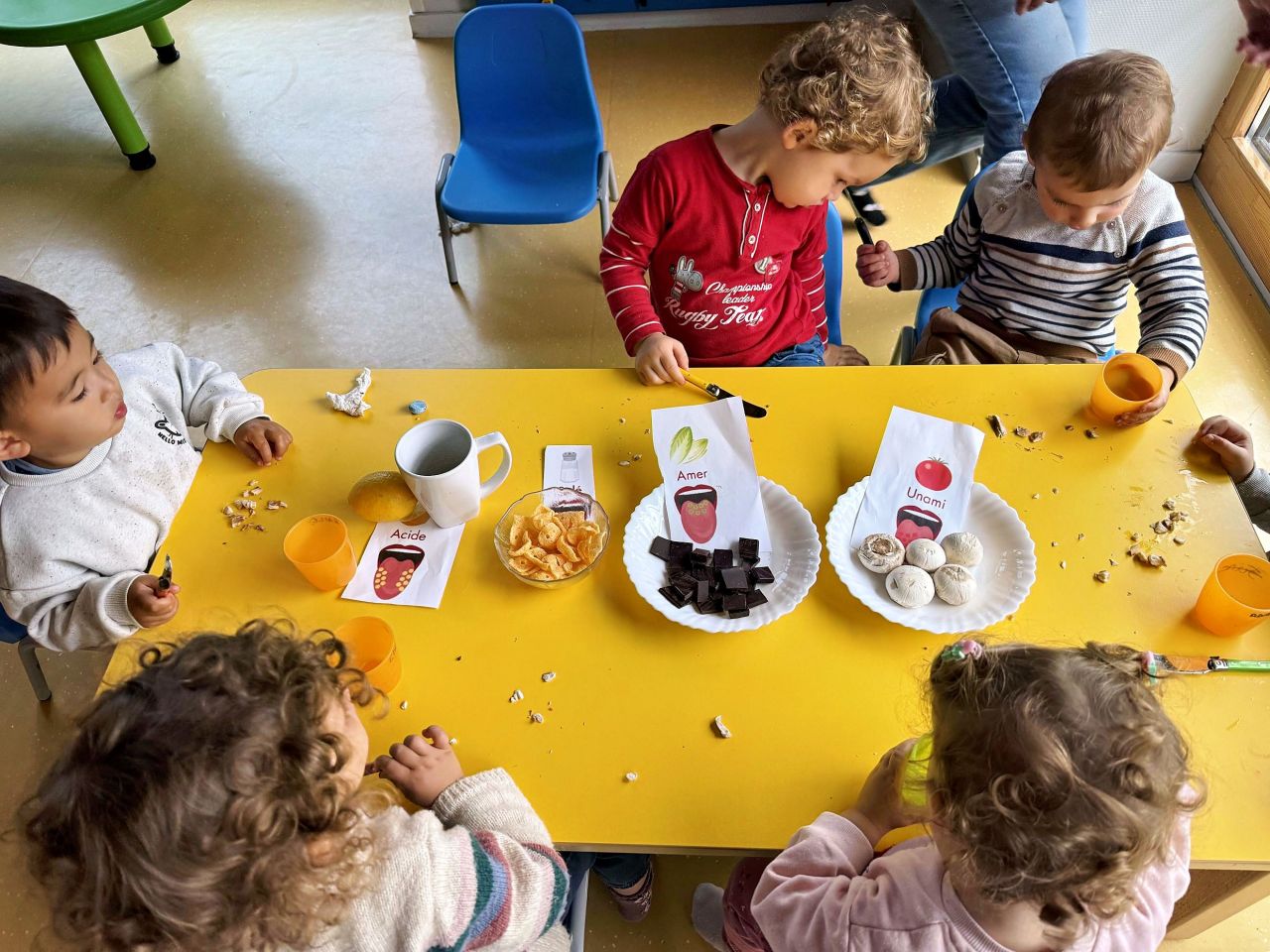 Mardi et mercredi, les enfants ont testé des aliments sucrés ou salés, acides ou amers : de quoi éveiller leurs jeunes papilles ! 😋