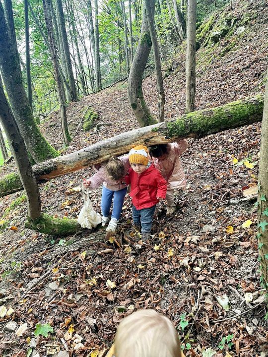 Mercredi matin, tous les enfants ont enfilé leurs chaussures pour partir en balade ! Les grands se sont bien dégourdis les jambes en allant explorer dans la forêt, pendant que les bébés observaient les feuilles voler (ou dormaient bien tranquillement !). 🌲🍁🍃