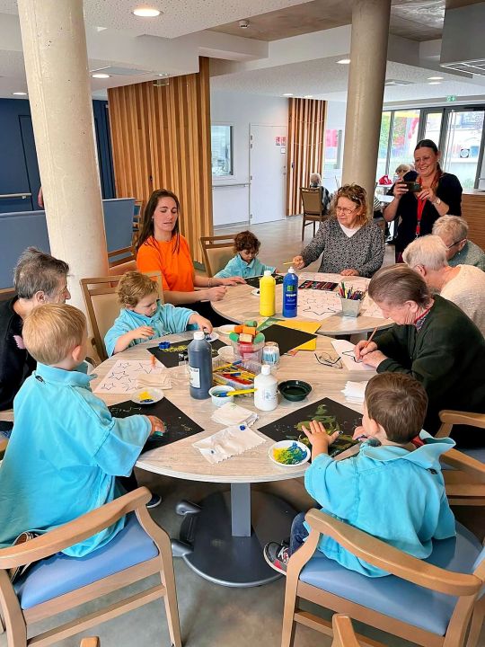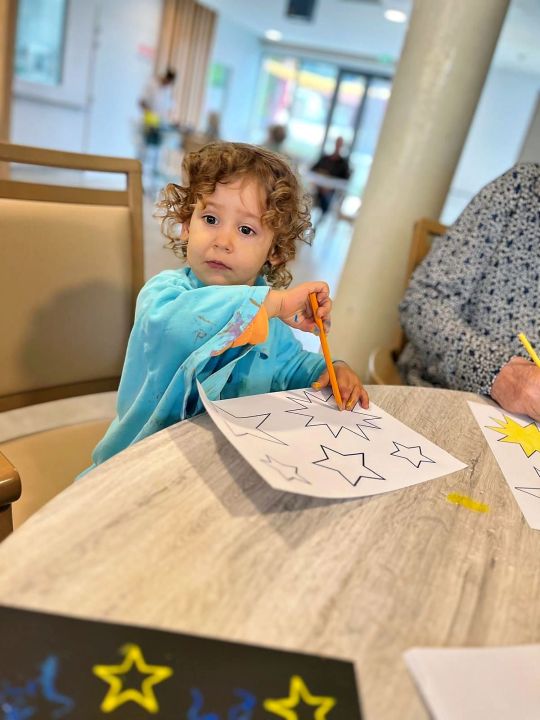 Autour d’un atelier peinture, de beaux liens se sont créer entre les plus anciens et les plus jeunes. 🎨✨